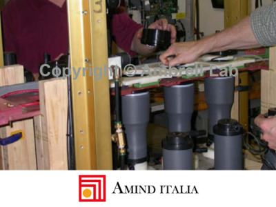 I moduli filtro sono assemblati con già posizionata la guarnizione. Viene applicata una pressione alle due metà del guscio e viene avviato il ciclo di riscaldo ad induzione. Dopo 10-12 secondi, il riscaldo viene interrotto e i moduli vengono rimossi dal posizionatore.